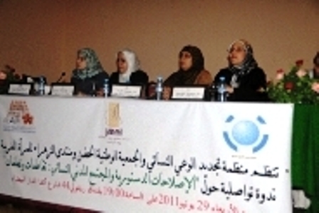 أكدت الجمعيات المشاركة في الندوة التواصلية التي نظمها كل من "منتدى الزهراء للمرأة المغربية"، "منظمة تجديد الوعي النسائي"، و"الجمعية الوطنية الحضن" الأربعاء الماضي بالدار البيضاء، في موضوع "الإصلاحات الدستورية بالمغرب، والمجتمع المدني النسائي : تقاطعات وتطلعات"، على إعلانها التصويت بـ "نعم" على مشروع الدستور الجديد، الذي اعتبرت أنه غير ممنوح لأنه أشرك كل مكونات المجتمع المغربي في صياغته، مع مواصلتها النضال من أجل تحقيق كافة مطالبها المتعلقة به وكذا بتحقيق انتقال ديمقراطي حقيقي يليق بالمغرب ويمكن المغرب من اللحاق بركب الدول الديمقراطية والمتقدمة سياسيا.