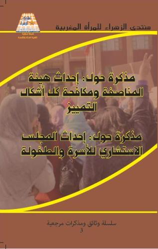 إن منتدى الزهراء للمرأة المغربية وهو يضع بين يدي العموم مذكرتيه حول المجلس الاستشاري للأسرة والطفولة وهيأة المناصفة ومكافحة كافة أشكال التمييز يعي أهمية اللحظة التأسيسية التي يعرفها المغرب، ويعتبر أن مسار النضال من أجل تعزيز حقوق المرأة وفق مقاربة تتبنى منهج وسطي يجتهد انطلاقا من المرجعية الإسلامية ويرتكز على المكتسبات الدستورية ويستوعب التغييرات والتطورات التي يعرفها الواقع، هو مسار تراكمي يتطلب عمل متواصل ودؤوب ويستلزم تظافر جهود الجميع.