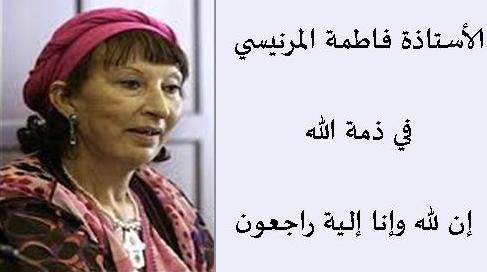 تلقينا ببالغ الأسى والحزن هذا الصباح نبأ وفاة الأستاذة فاطمة المرنيسي، وبهذه المناسبة الأليمة يتقدم مكتب منتدى الزهراء للمرأة المغربية بأحر التعازي لأسرة الفقيدة داعين الله العلي القدير أن يتغمدها بواسع رحمته، وأن يلهم أهلها وذويها الصبر والسلوان.