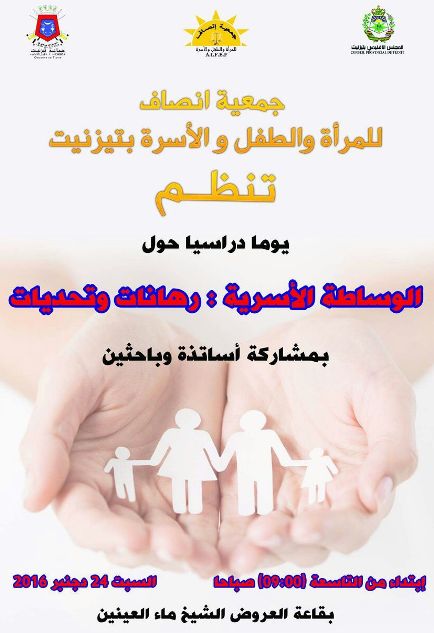 إيمانا من جمعية إنصاف للمرأة والطفل والأسرة بتيزنيت بأهمية موضوع الوساطة الأسرية ومحوريته في منهجية عملها، وفي سياق تفاعلها مع مخرجات المؤتمر الدولي للأسرة المنظم من طرف وزارة التضامن والمرأة والأسرة والتنمية الاجتماعية في دجنبر المنصرم 2015 بالصخيرات.