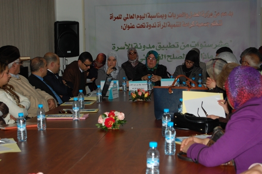 بدعم من وزارة العدل والحريات وبمناسبة اليوم العالمي للمرأة، نظمت جمعية كرامة لتنمية المرأة يوم الخميس 06 مارس2014 بمؤسسة الرعاية الاجتماعية دار الكرامة ندوة تحت عنوان عشر سنوات من تطبيق مدونة الأسرة ماذا عن الصلح القضائي؟